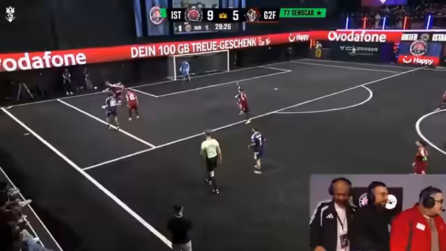 00:17:49Das Spiel zwischen Istanbul United und G2 Playblade verläuft äußerst intensiv und emotional. Kommentator Merta begeistert die Fans mit seiner lauten und leidenschaftlichen Kommentierung. Doch im Verlauf des Spiels gibt es einen schweren Vorfall, als ein Spieler von G2 mit einer offenen Sohle eingefasst wird. Dies löst bei Merta und dem Team große Besorgnis aus, da eine solche Verletzung den Spieler für die restliche Saison ausfallen lassen könnte. Merta verliert für einen Moment den Fokus auf das Spiel und konzentriert sich auf die Verletzung.