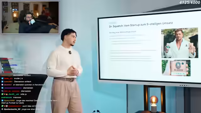 04:03:54Der Streamer schaltet zu einer Folge der Höhle der Löwen und zeigt den Pitch eines neuen Startups. Der Gründer, Adnan Al, möchte die Idee eines Felgenleasings umsetzen. Das Konzept ermöglicht es, Felgen unabhängig von einem Fahrzeug zu leasen. Die Investoren hinterfragen sofort die Machbarkeit und die praktischen Probleme, besonders die Frage der Rückgabe und der Sauberkeit der Felgen, sowie die hohen anfallenden Kosten bei Reifenwechseln und -verschleiß.