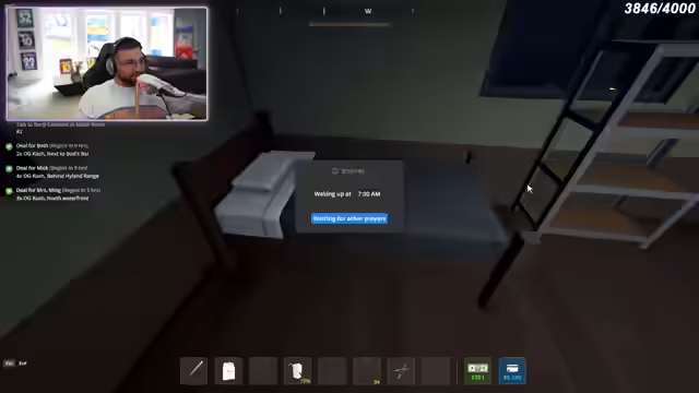 00:14:27Das Spiel beginnt, in dem die Teilnehmer Drogen verkaufen müssen. Sie kaufen zunächst Samen, um eine erste Ernte anzubauen und verkaufen kleine Mengen an Kunden. Die anfängliche Phase ist geprägt von der Organisation des Inventars und des Starts ins Geschäft. Die Streamer wirken etwas unkoordiniert und stoßen auf Herausforderungen, wie etwa die Verfolgung durch die Polizei.