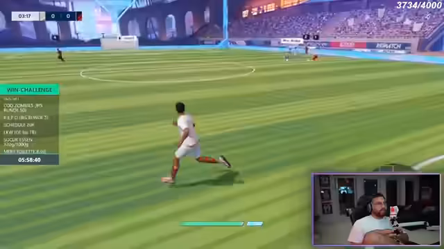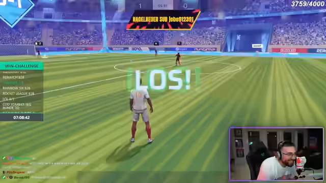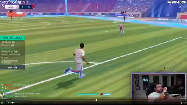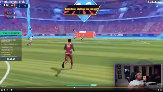19:57:59Nachdem das Team mehrere Tore kassiert hat, ergreift der Streamer die Initiative und befiehlt einem Mitspieler, konsequent nach vorne zu spielen, während er selbst die Abwehr übernimmt. Die Strategie scheint zunächst aufzugehen, als das Team einen Gegentreffer erzielt. Doch die Freude ist von kurzer Dauer, da die gegnerische Mannschaft kurz darauf den Ausgleich schafft. Der Streamer bleibt in seiner defensiven Rolle und versucht, das Spiel wieder zu stabilisieren, während er seine Mitspieler weiterhin lautstark anleitet.