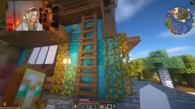 00:09:58Merleperle zeigt den Zuschauern ein großes Loch, das sie Offstream ausgehöhlt hat, um eine unterirdische Basis zu bauen. Sie ist noch unsicher über die genaue Größe und sucht nach kreativen Ideen für die Gestaltung. Sie erwähnt, dass sie Sidequests liebt und dies auch in ihrem echten Leben so sei. Eine Inspiration ist ein Bild mit einem Baum und lila Kristallen, das sie sehr ansprechend findet, auch ohne die Kristalle. Sie überlegt, ob sie die vorhandenen zwei Geoden in der Nähe nutzen könnte, aber es fällt ihr spontan nichts Besonderes ein. Die Community schlägt verschiedene Ideen vor, wie einen 'Underground Club' oder 'Disco-Kugeln', aber Merleperle favorisiert die Idee mit dem großen Baum und der lila Optik. Während der Erkundung wird sie von Creepern angegriffen und muss schnell Essen und ein neues Totem besorgen.
