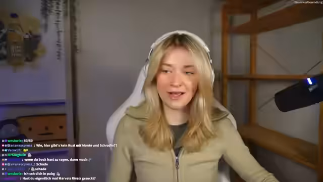 01:35:01Merle erkundet ein neues Gebiet, in das sie durch einen Wasserfall gelangt ist. Sie hat die Cutscene verpasst und weiß nicht, was sie erwartet. Sie trifft auf einen Gegner und versucht, ihn zu besiegen. Yoshi erwähnt, dass sie die beiden Twinblades bereits hat und sie nur noch leveln muss. Merle möchte jedoch weiterhin das Gebiet erkunden. Yoshi informiert sie über ein Rust-Event, zu dem sie nachjoinen kann. Sarbex erlaubt es Leuten nachzuscheinen. Merle ist unsicher, da sie nicht weiß, wie Rust funktioniert, aber Yoshi versichert ihr, dass niemand es genau weiß. Sie fragt nach den Teamgrößen und ob sie mit ihren Freunden zusammenspielen kann. Sie erkundigt sich nach den Regeln für Kämpfe und ob es erlaubt ist, andere Spieler zu töten. Sie spricht über potenzielle Feinde im Spiel, wie Hanky, der als "sweat" gilt und andere Spieler ohne Voice-Chat tötet.