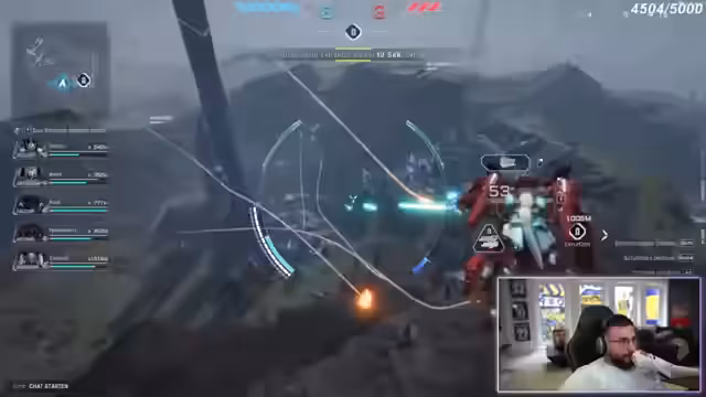 01:50:17Der Streamer geht auf die Vielfalt der Spielfiguren und Spielmodi ein. Jeder Mech hat eine eigene Funktion und Rolle im Kampf. Es gibt schwere, panzergleiche Roboter, flexible und bewegliche Modelle, sowie spezialisiene Klassen wie Nahkämpfer, Fernkämpfer, Sniper, Heiler und Beschützer. Im Gameplay werden verschiedene Fähigkeiten wie Fernkampf, Nahkampf und ein Jet-Modus gezeigt. Die Teams kämpfen in 6-gegeneinander-Schlachten, wobei Kooperation und Taktik eine entscheidende Rolle spielen. Der Fokus liegt auf abwechslungsreichen und dynamischen Kämpfen.