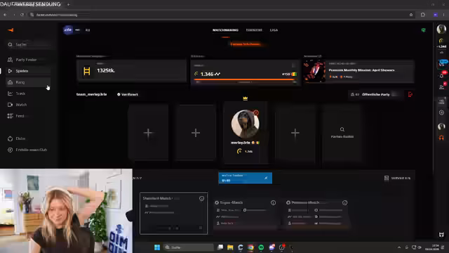 01:26:00Nach dem Frühstück und einer kurzen Unterbrechung, in der die Streamerin ihre Instagram-Einstellungen ändert, kehrt sie zurück zum Gameplay. Sie sucht erneut ein Faceit-Match und fragt den Chat, ob sie heute Level 8 erreichen kann. Dabei spricht sie über ihre Spielweise und erwähnt, dass sie selten Premium-Matches spielt, was ihre Elo beeinflussen könnte. Sie motiviert sich und ihr Team, um besser abzuschneiden.