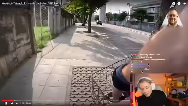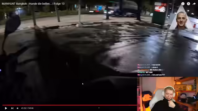 00:27:02Der Streamer und seine Taskforce beginnen mit der Live-Analyse von Manhunt Folge 13. Der Fokus liegt auf dem Spieler Brian alias Carsten, der in Bangkok um sein Überleben kämpft. Nachdem er sein Handy in der U-Bahn verliert und es zufällig wiederfindet, setzt er sich in eine Metro. Die Jäger, ausgestattet mit einem Moped, verfolgen ihn und vermuten, er könnte eine oder zwei Stationen weiter gefahren sein, was eine aufwendige Suche auslöst.