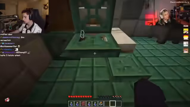 04:06:06Die Zuschauer loben Bastis Idee für den Escape Room. Hugo hat Schwierigkeiten, das Wasser zu finden, obwohl es von der Decke tropft. Er ist frustriert und hat eine Lore, die er nicht entcraften kann. Die Zuschauer sind überrascht, dass Hugo, obwohl er ein Minecraft-Profi ist, nicht an den Crafting Table kommt. Er versucht, Blöcke zu platzieren, was jedoch nicht funktioniert. Hugo entdeckt ein Wireless-Element und einen Kessel, den er nicht abbauen kann. Er ist frustriert über die Dunkelheit und die fehlenden Shader. Die Zuschauer merken, dass Hugo immer wieder die Toilette abbaut. Er fragt sich, ob er Tipps bekommen wird, was abgelehnt wird. Hugo entdeckt Goldnuggets, Sand und eine Lore. Er versucht, Wasser aus der Toilette zu nehmen und bemerkt weiteren Sand. Er überlegt, Flaschen zu craften, hat aber noch kein Wasser. Er verbrennt Blätter, um Sand zu erhalten, und ist verwirrt über die Geräusche eines Wireless-Sensors. Er hat drei Glasblöcke, aber immer noch keinen Zugang zur Werkbank.