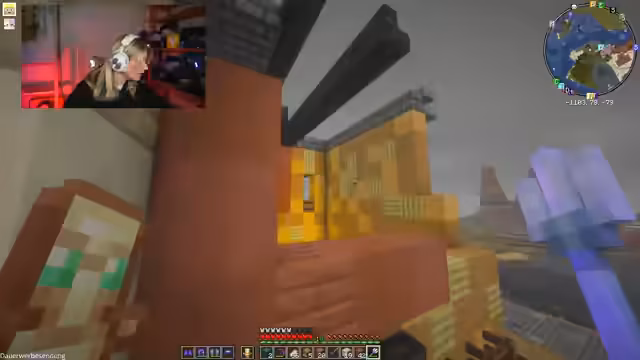 01:01:08Die Streamerin ist intensiv mit dem Bau ihres Hauses beschäftigt und plant noch das Dach sowie weitere Details. Sie erwähnt die „Dance-Wars“, die Masha in ein Video geschnitten hat, und bezeichnet diese als „kriminell“. Es gibt eine Diskussion über das Konzept von „Project Artemis“, bei dem Enderperlen zufällig teleportiert werden könnten. Die Streamerin arbeitet an den Details ihres Hauses, insbesondere an einem Balkon und der Verkleidung mit „Tough Bricks“ und Andesit. Sie freut sich auf das Endergebnis, obwohl der Bau aufgrund kleinerer Probleme und fehlender Materialien immer wieder herausfordernd ist. Der Wunsch, ein „Custom Model“ für ein Feuerfass zu erstellen, um das Campfire-Design zu verbessern, zeigt den kreativen Ansatz im Bauprojekt. Die Idee, Iron Trapdoors zu verwenden, wird verworfen, da sie nicht gut aussehen würden, und es wird nach alternativen Lösungen gesucht, um das Design zu optimieren.