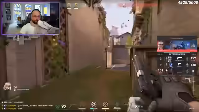 00:01:14Der Streamer startet seinen Livestream und berichtet über aktuelle gesundheitliche Probleme. Er leidet unter starken Halsschmerzen und erklärt, dass er deswegen einen Schal trägt. Ungeachtet seiner Erkrankung bittet er den Chat um Reaktionen und gibt an, direkt in ein Valorant-Spiel zu starten.