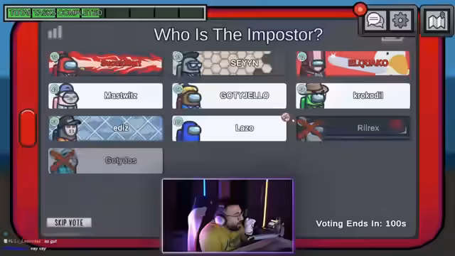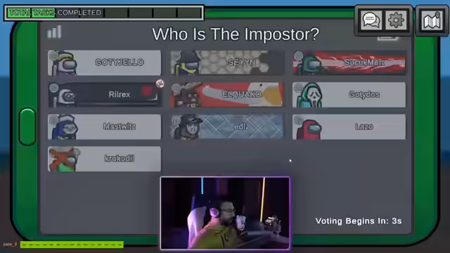 Es wurde eine intensive Runde Among Us gespielt. Es wurde über verdächtige Todesfälle diskutiert und versucht, den Imposter zu entlarven. Die Mitspieler suchten nach Hinweisen, verdächtigten sich gegenseitig und es kam zu emotionalen Konfrontationen. Das gemeinsame Ziel war, den Betrüger zu finden.