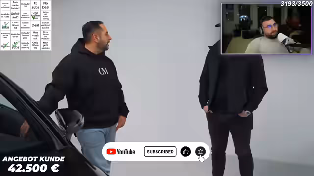 00:17:02Es wird eine Vereinbarung bezüglich zukünftiger Watchparty-Streams bekannt gegeben: Streams zu Galatasaray-Spielen finden auf dem Kanal des Partners statt, während Fenerbahçe-Spiele auf dem eigenen Kanal gestreamt werden. Dies soll technische Probleme vermeiden und die Zusammenarbeit vereinfachen. Sebastian und seine Frau planen den Verkauf des Cabrios aufgrund von Nachwuchs und suchen nach einem größeren SUV, wie einem Touareg, Porsche Cayenne oder einem Mercedes GLE Coupé. Sebastian fährt beruflich einen GLC 43 als Firmenwagen und schätzt dessen Motor und Fahrverhalten. Die Probefahrt des Cabrios wird fortgesetzt, wobei die Nackenheizung und das Sportabgassystem getestet werden. Die Diskussion über den Verkaufspreis bleibt schwierig, da Sebastian weiterhin bei seiner Preisvorstellung von 40.500 Euro bleibt, während der Käufer deutlich weniger bieten möchte. Die Mängel des Fahrzeugs, insbesondere der Lackzustand und die Spaltmaße, werden während der Begutachtung durch Serkan detailliert analysiert und als Argumente für eine Preisanpassung herangezogen.