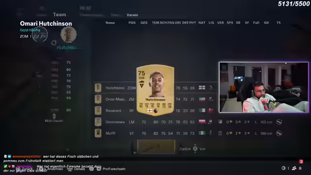 00:03:23Der Streamer öffnet Promo-Packs und stellt fest, dass Spieler günstiger geworden sind, wie Hakan. Er beklagt den Preis von Spielern und handelt mit dem Chat über den Kauf von Innenverteidigern wie Ramires und Lucio. Er diskutiert über die Chemie und den Wert von Spielern und kauft schließlich Ramires für 1,14 Millionen. Es werden viele Kommentare im Chat zur Kaufentscheidung geteilt.