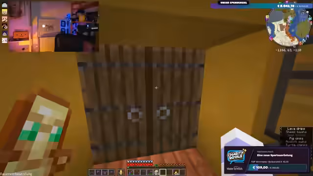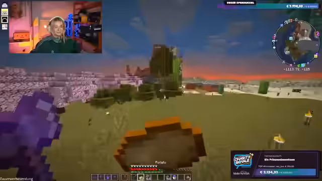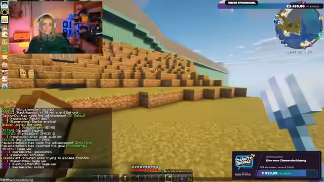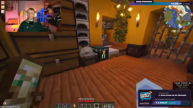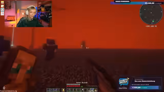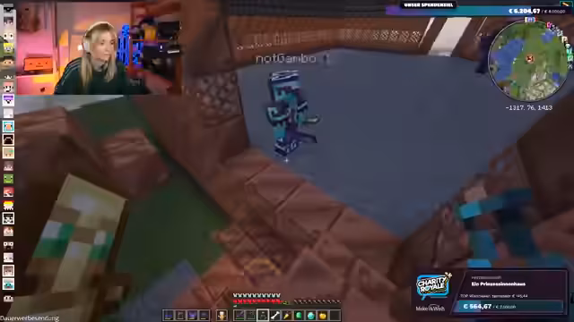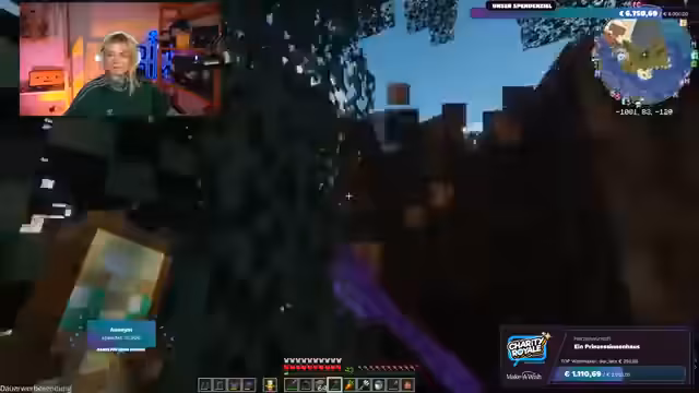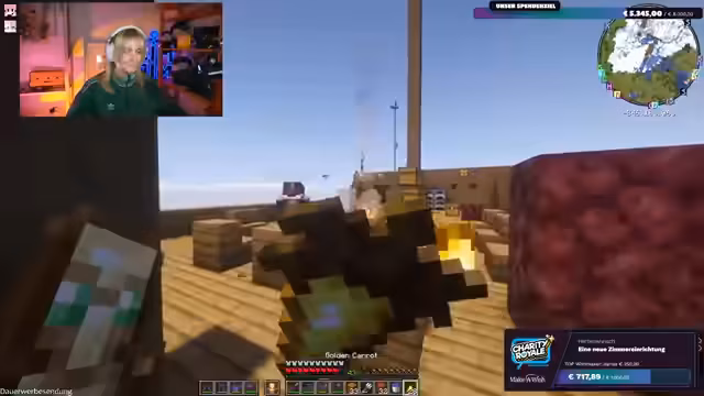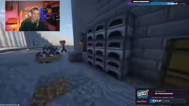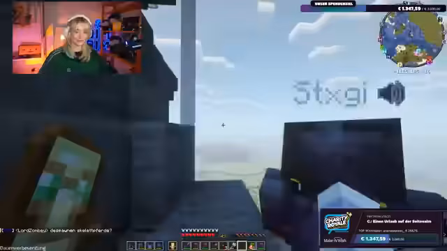01:55:38Im Rahmen des Charity-Streams werden Spenden gesammelt, wobei Merle bereits 2.500 Euro erreicht hat. Hugo, der ebenfalls anwesend ist, wird nach seiner Spende gefragt. Es gibt eine humorvolle Interaktion, in der Merle Hugo neckt und ihn fragt, was er sich wünscht, dass sie in Österreich baut, wobei es einen Bezug zu Neo-Tokyo-Wikinger-Österreich haben soll. Hugo schlägt einen majestätischen, altmodischen Wikinger-Pferdestall vor. Die Spendenaktion nimmt Fahrt auf, und es wird ein neues Spendenziel für ein iPad mit Zubehör festgelegt, nachdem das ursprüngliche Ziel von 3.000 Euro bereits übertroffen wurde. Die Community wird aktiv zum Spenden animiert, um das nächste Ziel von 4.000 Euro zu erreichen. Während Merle eine Kaffeepause einlegt, übernimmt ein Co-Streamer und startet eine interaktive Herausforderung: Für jede 10 Euro Spende wird Merles Spielfigur in Minecraft einen Block tiefer in ein Loch gebaut, um die Spannung und Spendenbereitschaft zu erhöhen.