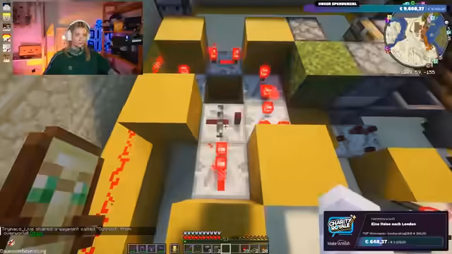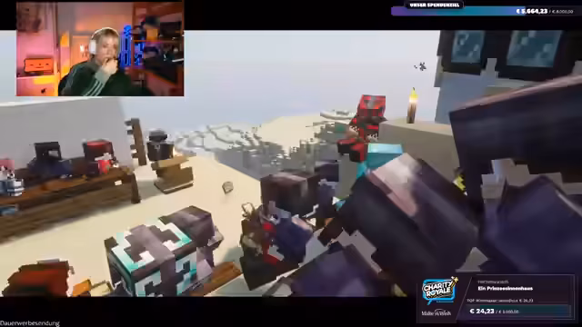 07:42:38DJ Sticky Piston, alias Kevin Papaplatte, sollte nun innerhalb von 15 Minuten einen Teleporter bauen. Heiko Kastlopter startete den Timer. Kevin kündigte an, dass er währenddessen kurz auf Toilette gehen würde und hoffte, dass bei seiner Rückkehr die 8.000 Euro erreicht seien. Die anderen Streamer unterhielten die Zuschauer in der Zwischenzeit. Es wurde über Kindheitserinnerungen und Schulzeit gesprochen, insbesondere über die Erfahrungen in einer reinen Jungenschule. Die Diskussionen waren humorvoll und nostalgisch, während die Spannung auf Kevins Teleporter-Bau und das Erreichen des Spendenziels aufrechterhalten wurde.