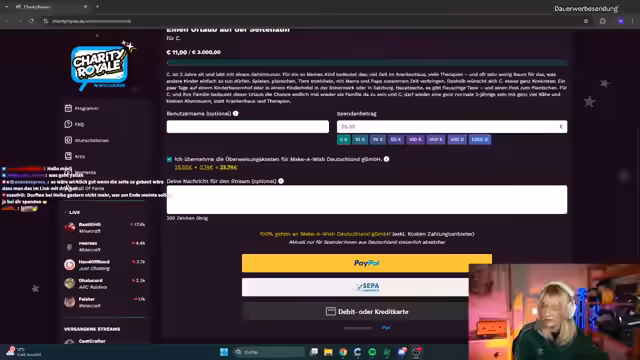00:01:42Der Streamer startet einen Charity-Stream, um Spenden für schwerkranke Kinder zu sammeln und ihnen Wünsche zu erfüllen. Er weist darauf hin, dass es einen speziellen Link gibt, über den Spenden steuerlich geltend gemacht werden können, insbesondere für höhere Beträge. Dieser Link muss explizit angeklickt werden, um die Spende in Deutschland steuerlich absetzen zu können. Es wird auch kurz auf technische Audioprobleme eingegangen, die aber schnell behoben werden können. Die Community wird gebeten, den Hinweis zum steuerlichen Absetzen der Spenden zu klippen und anzupinnen, um sicherzustellen, dass alle relevanten Informationen verfügbar sind.