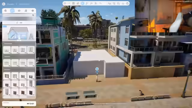 01:19:57Nachdem das Outfit in verschiedenen Variationen (Party, Schlaf, Schule, Büro) erstellt wurde, ist der Charakter schließlich fertig. Die Streamerin wechselt ins Spiel und wählt die Stadt Bliss Bay für ihren neuen Anfang aus. Mit einem Budget von 55.000 Geldeinheiten beginnt sie mit der Auswahl eines Hauses. Ihr Ziel ist ein Haus mit Garten und am Strand gelegen. Letztlich entscheidet sie sich für ein Grundstück im Nordstrand und plant, ein modernes Haus mit Garage und Dachterrasse zu bauen.