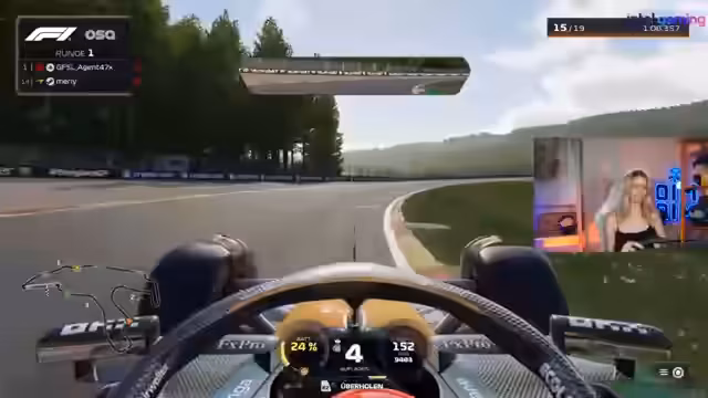 00:07:08Nachdem die Lenkräder für die Chatter ausgerückt sind, beginnt das eigentliche Gameplay. Der Streamer startet ein Formel-1-Spiel und muss dabei technische und spielinterne Probleme überwinden. Er sucht nach einem funktionierenden Pedal, merkt, dass er mit einer Socke fährt, und hat Schwierigkeiten, sein Setup und seine Kamera zu konfigurieren, was ihn frustriert und zu Rufen wie 'Fuck it, maske weg' veranlasst.