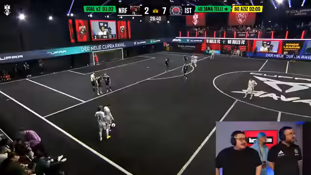 01:28:40Das Spiel verläuft sehr intensiv und knapp, besonders im 2-Modus. Es kommt zu hitzigen Diskussionen über Schiedsrichterentscheidungen, Regeln und Auswechslungen. Der Streamer ist über vermeintliche Fehlentscheidungen der gegnerischen Mannschaft 'No Rules' verärgert und kritisiert deren Spielstil. Gleichzeitig lobt er die Leistung der eigenen Spieler, die unter Druck 'unglaublich hart gefightet' haben.