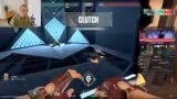 00:56:09Ein Spiel in Valorant beginnt. Der Streamer wählt den Duelisten Breach und erklärt seine Rolle im Team. Er gibt Anweisungen zur Rauchgranaten-Wurfposition und zur Verteidigung einer bestimmten Ecke. Das Team startet stark, aber der Gegner kontert mit einem aggressiven Angriff auf der Bombsite.