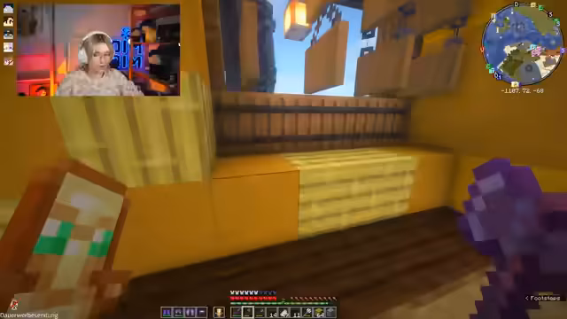 06:50:09Die Streamerin spricht über eine anspruchsvolle Minecraft-Challenge, bei der sie das Spiel durchgespielt hat, ohne Blöcke abzubauen, Gegner anzugreifen, Kisten zu öffnen, mit Villagern zu handeln, ein Inventar zu nutzen oder Gegenstände fallen zu lassen. Diese Leistung wird als sehr beeindruckend empfunden. Später im Stream kommt das Thema Musikinstrumente auf. Die Streamerin gibt zu, dass sie früher Blockflöte spielen konnte, es aber verlernt hat und Noten nur nach Gehör oder mit farbigen Markierungen spielen konnte. Ein Zuschauer spielt auf einem Kalimba, einem Instrument, das auch für einige Minecraft-Sounds verwendet wurde, und errät anschließend ein Lied, das die Streamerin auf einem Instrument spielt.