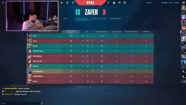 06:00:58Der Streamer analysiert die bisherige Leistung im Turnier, wobei er seine eigenen Statistiken (12 Kills, 19 Assists, 17 Deaths) als zufriedenstellend ansieht, aber auch seine Frustration über verpasste Gelegenheiten äußert. Er betont, dass das Team weiter zocken muss, wenn es gewinnt, und gibt einen Einblick in seine Vorbereitung für das Finale, indem er über die Map-Auswahl und den geplanten Einsatz bestimmter Agenten wie Omen oder Chamber spricht.