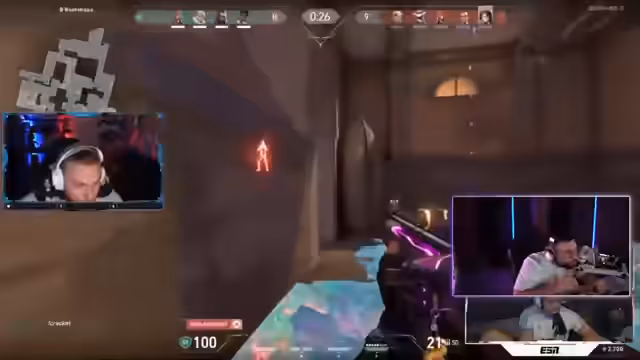 09:18:56Im Eligella Valo Cup wird eine intensive Runde gespielt, die von kommunikativen Problemen und schnellen Entscheidungen geprägt ist. Der Fokus liegt auf der A-Seite, wobei der Streamer zunächst auf Schritte auf A reagiert und die Teamkameraden auffordert, nicht unüberlegt zu pushen. Es kommt zu Missverständnissen, da er mit einer Bucky agieren wollte, während Kameraden bereits in A vorgehen. Trotzdem gelingt es dem Team, durch gute Kills und Ulti-Einsätze die Runde mit 11:11 zu drehen, was als großer moralischer Boost gewertet wird.