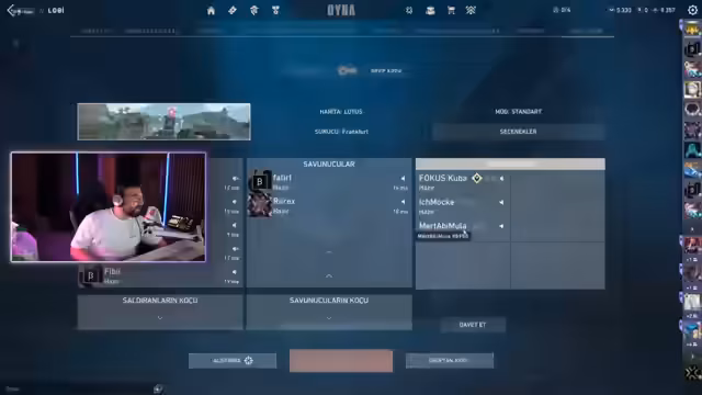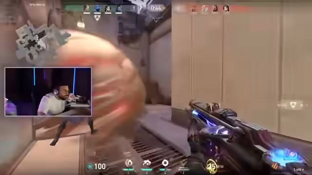 07:49:07Der Stream beginnt mit einer hochenergetischen und unkoordinierten Sequenz. Kommentatoren diskutieren über die Positionierung der Spieler auf der Map Lotus und beobachten, wie ein Gegner durch mehrere Ebenen (Decke, Wall) dringt. Die Situation spitzt sich zu, als ein Spieler mit dem Codenamen 'Matze' einen Ass-kick holt, obwohl er nur 1 HP hat, was im Chat für Begeisterung sorgt. Dies wird als Schlüsselmoment für den Teamgeist gefeiert.