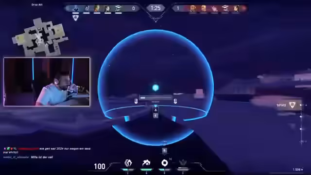 05:10:23Für die aktuelle Runde wird der Charakter Raze ausgewählt, um mit einer guten Kombination aus Raze und Breach die Oberhand zu gewinnen. Der Streamer spricht Willi direkt an und fordert dessen besten Einsatz des Breach. Er verspricht, selbst seinen besten Langzopf einzusetzen und gibt dem Team taktische Hinweise, wie sie durch geschickte Bewegungen und das Setzen von Fallen die Gegner überraschen können.
