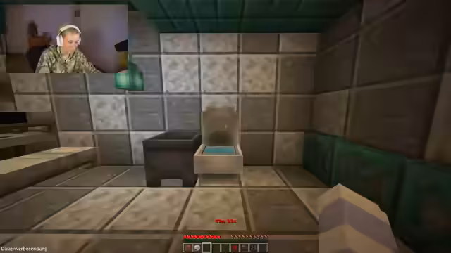 01:10:29Merle betritt den ersten Raum des Escape-Rooms und ist sofort verwirrt. Sie entdeckt eine blinkende Laterne, tropfendes Wasser, eine Rote-Bete-Verwendung (?) und eine Nautilus-Shell. Sie kann die Toilette nicht drehen (früher möglich). Crafting-Möglichkeiten fehlen (kein Crafting Table), und sie versteht nicht, wie sie die Gegenstände kombinieren soll. Sie probiert alles aus: Rote-Bete in der Toilette, Armor Stand platzieren (geht nicht), Schiefer-Pottery. Nach 15 Minuten ist sie frustriert, da nichts passiert. Sie fühlt sich planlos und bemerkt, dass das Rätsel schwieriger ist als erwartet.