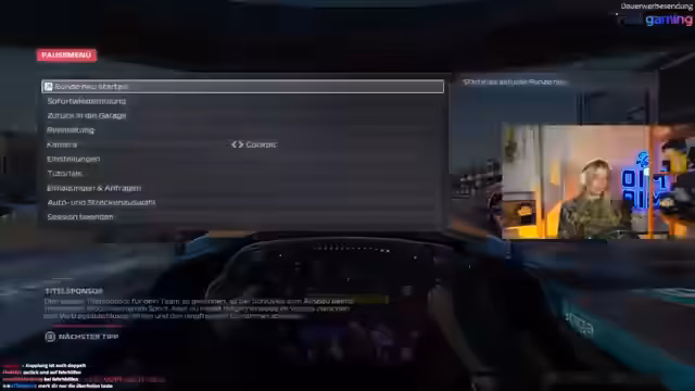 01:47:11Der Stream beginnt mit mehreren Kollisionen und technischen Problemen. Die Streamerin beschreibt, wie sie mit ihrem Auto rückwärts an der Strecke liegen bleibt und dabei Markus mitnimmt. Es folgen frustrierende Versuche, das Rennen fortzusetzen, wobei sie mehrfach einen 'roten Karton' sieht und eine Zeitstrafe von drei Sekunden erhält. Die Situation eskaliert, als sie sich mit einem anderen Spieler anlegt, der versucht, sie abzudrängen und dabei in eine Mauer fährt. Die Stimmung ist geprägt von Frustration über die unkontrollierbare Situation und die Performance des Autos.