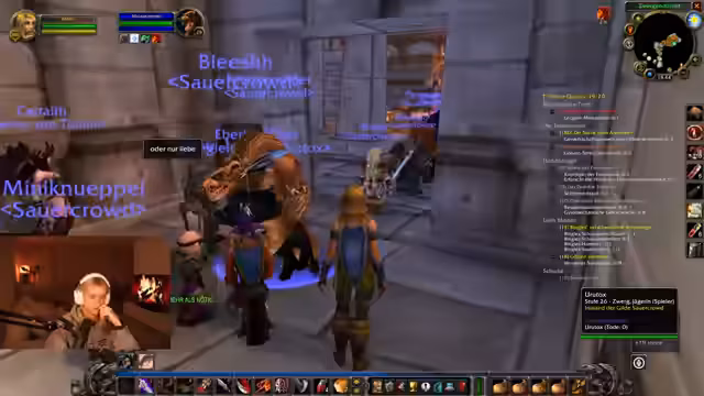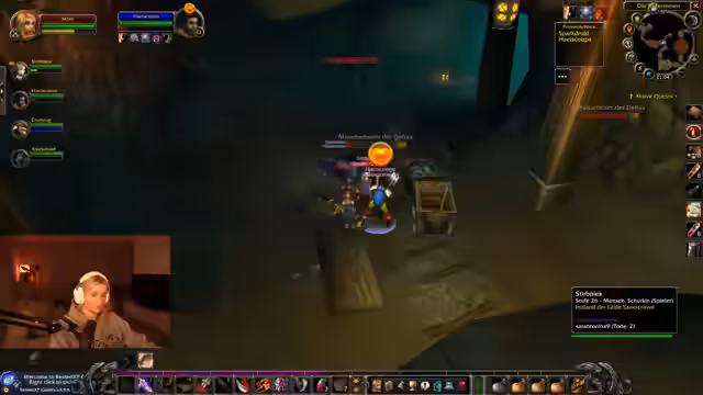 04:36:46Der Stream beginnt mit der Koordination einer Gruppe für einen Dungeon-Run. Es werden Verzögerungen erwähnt, da nicht alle Mitglieder, einschließlich Merle, sofort anwesend sind. Die Gruppe bereitet sich auf den Instanz-Einstieg vor, während es bereits erste Diskussionen über Spielmechaniken wie das Plündern von Gegenständen und das Verteilen von Talentpunkten gibt, was auf ein gemeinsames, kooperatives Gameplay in World of Warcraft hindeutet.