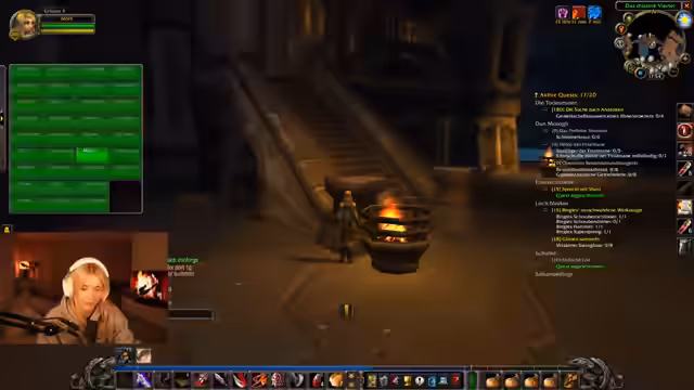 03:17:40Der Stream beginnt mit der Charakterausrüstung, die in die Gildenbank gebracht werden soll, und der Erledigung von Quests. Der Fokus liegt auf dem Levelaufstieg von Level 17 und der Bewältigung der Quest "Chef-Ingenieur! Eine dunkle Bedrohung". Die Zusammenarbeit mit Chat-Mitgliedern, genannt Bruder und Marek, wird thematisiert, während die Schwierigkeiten bei der Jagd nach speziellen Mobs und der Umgang mit Zeitlimiten in den Quests beschrieben werden.