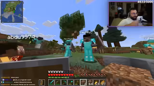 01:46:52In der Minecraft-Session kommt es zu unprovozierten Angriffen auf den Streamer, der seine Position als Osmane betont und darauf hinweist, dass er sich grundlos verteidigen muss. Nachdem seine Schafe und Brücke bombardiert wurden, schlägt er ein Schiedsgericht im virtuellen 'Kaffee Hack' vor, um den Konflikt innerhalb von anderthalb Stunden zu klären. Er stellt klar, dass er trotz mehrfacher Angriffe nur einmal reagiert hat und fordert die Verantwortlichen auf, mit Namen zum Treffen zu kommen, um die Angelegenheit zu bereinigen.