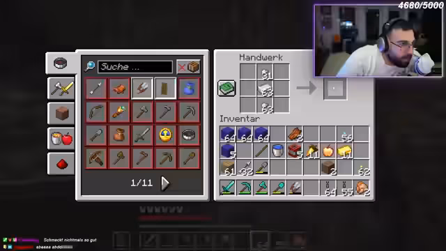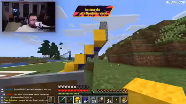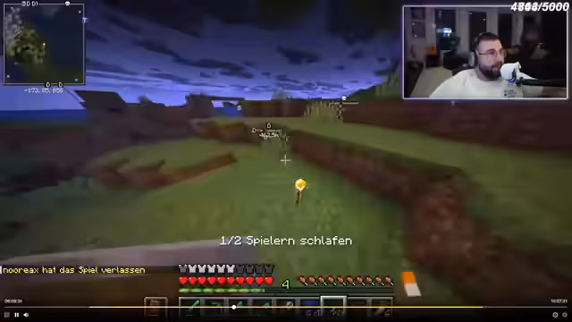 16:54:21Die Spieler bemühen sich dringend um neue Ressourcen wie Eisen und Scheren, um ihre Ausrüstung wieder aufzubauen. Sie diskutieren über Matze als Hauptgegner und dessen vermeintliche Ausnutzung von Spielmechaniken. Es werden Pläne für einen Bombenkrieg geschmiedet, inklusive dem Bau von Sprengladungen und der Nutzung von Enderperlen für Überraschungsangriffe. Die Gruppe schwört, bei der nächsten Gelegenheit mit maximaler Härte zu kontern.