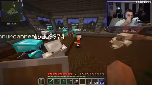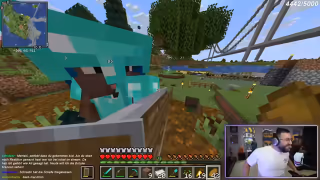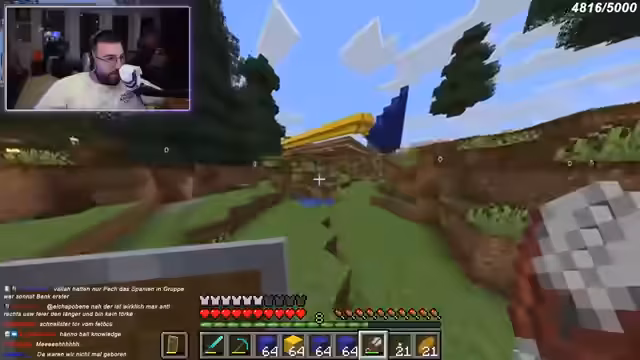 14:16:40Nach dem Konflikt konzentriert sich die Gruppe auf langfristige Projekte, darunter den Bau einer Erfahrung-Farm (XP-Farm) und die Vorbereitung von TNT-Experimenten. Es werden Strategien für Ressourcenbeschaffung, etwa die Zucht von Schafen für Wolle oder die Optimierung von Erzabbau, besprochen. Gleichzeitig laufen Hintergrundgespräche über persönliche Beziehungen und frühere Erlebnisse, während praktische Minecraft-Herausforderungen wie der Umgang mit Villagern und das Platzieren von Redstone-Komponenten im Mittelpunkt stehen.