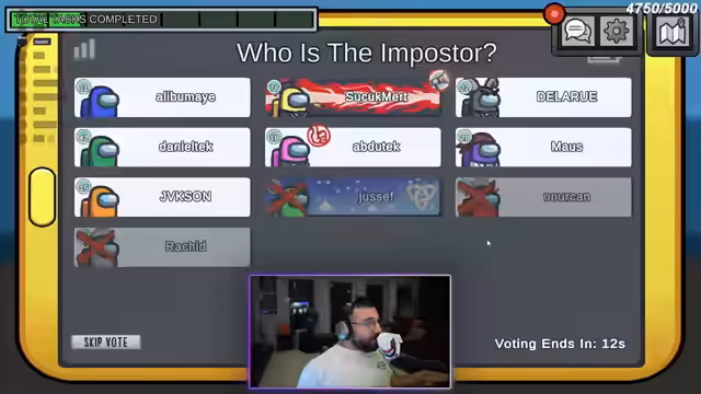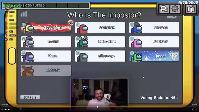 07:39:23Nach einem Mordfall diskutiert die Gruppe Verdächtige, insbesondere Ali und Onurcan. Der Streamer analysiert Bewegungen in Cafeteria und Electrical, während Rashid beschuldigt wird, durch gezielte Meldungen Verdacht abzulenken. Es entstehen Konflikte über Alibis und Zeitachsen, besonders als Rashid und Jackson in Verdacht geraten. Der Streamer plädiert für strategisches Wählen in der nächsten Runde, um Doppelkilling der Impostoren zu verhindern.