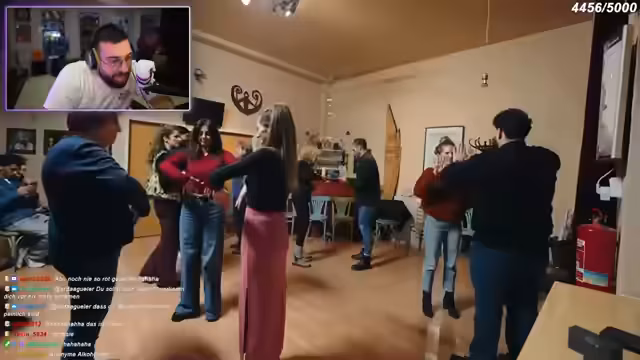 02:19:12Der Streamer wechselt zu einem Schauspieltraining mit der Gruppe 'Acting People'. Nach warm-up-Übungen wie Atemtechniken und Körperschütteln folgen komplexe Koordinationsübungen ('Whiskey Mixer', 'Mastwechsel'), bei denen Teilnehmer auf Kommandos reagieren müssen. Es gibt Rollenspiele, emotionales Training (Darstellung von Arroganz oder Selbstbewusstsein) und Improvisationsaufgaben. Besonders hervorgehoben wird die 'Spiegelübung', bei der Teilnehmer durch exaktes Nachahmen Körperwahrnehmung und Konzentration trainieren.