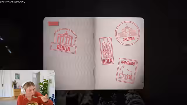 00:45:23Der Stream gipfelt in der Ankunft in München auf dem Olympiagelände. Nachdem sie den Zug verlassen hat, läuft sie zum Zielort. Sie trifft auf einen 'Leser', der ihr den finalen Stempel für die Challenge gibt. Mit diesem Stempel ist ihre Mission erfolgreich abgeschlossen. Sie ist überwältigt von der Erleichterung und dem Gefühl, das Ziel nach einer langen und beschwerlichen Reise erreicht zu haben.