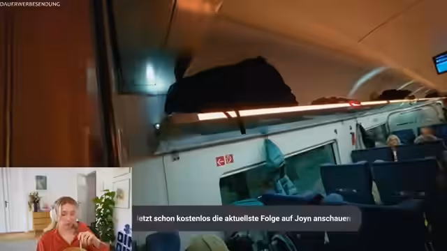 00:22:12Immer noch auf dem Weg nach München, trifft die Streamerin zufällig auf Lena und Paul, die sie in ihrem Auto mitnehmen. Dieses Treffen ist für sie ein Wendepunkt und bezeichnet das Ende des 'Dramas'. Sie sind nun wieder im 'Gewinnermodus'. Nach Ankunft in einer Raststätte prüft sie die Verbindung nach München, beschließt aber, die Nacht in einem Nachtzug-ICE nach München zu verbringen, um die Mission fortzusetzen. Die restliche Zeit im Zug verbringt sie mit Schlafen und beobachtet die Umgebung.