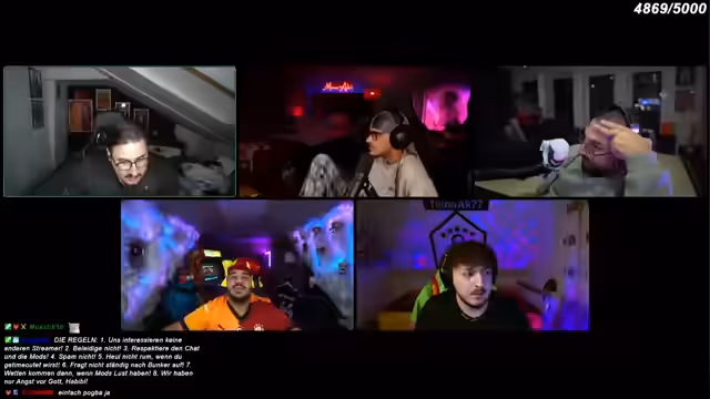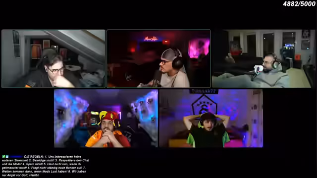 16:41:14Es herrscht eine anhaltende Verwirrung über die Anwesenheit und das Verhalten der Spieler. Der Streamer äußert, er höre Stimmen und sehe Spieler doppelt. Er kritisiert die mangelnde Disziplin, da alle Spieler krank und erschöpft zu sein scheinen. Insbesondere wird Ahmed Ahmed TV erwähnt, der aus Hagen stammt und nicht aus Bochum. Der Streamer fordert ein Fotoshooting für Pressebilder, das für Sponsoren wichtig sei, und droht, die Spieler dazu zu zwingen.