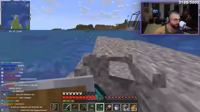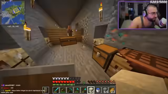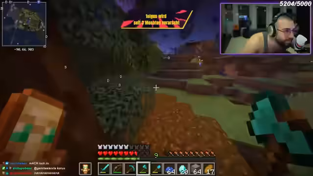 17:54:58Im Minecraft-Chat bricht ein Konflikt aus, als die Burg des Streamers von anderen Spielern, darunter angeblich Ali, gesprengt wurde. Er fühlt sich betrogen und sieht sich als Opfer von Verrat, besonders da ein 'türkischer' Spieler Ali an der Zerstörung beteiligt gewesen sei. Der Streamer schwört Rache und plant, das 'Kaiserreich' mit TNT anzugreifen und eine Mauer zu bauen, um seine Ressourcen zu schützen.