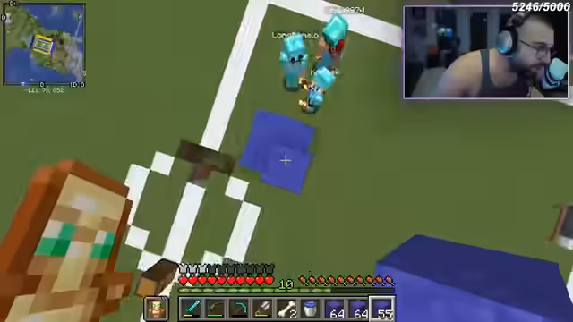 01:50:41Der Bau des Stadions wird abrupt unterbrochen, als eine rivalisierende Gruppe, der Araber-Clan, anklopft. Diese fordert Schutzgeld in Höhe von zwei Diamanten pro Tag. Der Streamer ist in einer schwierigen Position und muss die Forderung erfüllen, um seinen Bau und seine Ressourcen zu schützen. Dieser Konflikt zwingt die Gruppe, ihre Pläne zu ändern und sich der neuen Bedrohung zu stellen.