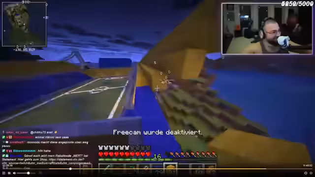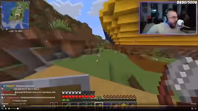 06:10:43Der Stream wechselt zu einem Minecraft-Server, wo massive Konflikte eskalieren. Bauten des Streamers und seiner 'Mannschaft' wurden von anderen Spielern, wie 'Monte', 'Knossi' und 'G-Tasty', zerstört. Beschuldigungen und Provokationen fliegen hin und her, und es gibt Pläne für Racheakte wie das Sprengen des 'Kaiserreichs'. Die Situation wird als eine Art Krieg zwischen verschiedenen Gruppierungen dargestellt.