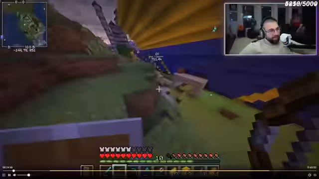 08:30:32Zu Beginn des Stream-Ausschnitts beschäftigt sich der Streamer intensiv mit dem Bau seines Stadions. Er versucht, eine neue Schaufel herzustellen und sucht nach spezifischen Büchern, um Effizienz zu erhöhen. Dabei bittet er im Chat um Informationen, wie man bestimmte Level erreicht und welche Materialien wie Dingsand und Keys benötigt werden. Gleichzeitig erwähnt er Probleme mit der Stabilität der Konstruktion und stellt fest, dass sein Stadion angezündet wurde, was seine Arbeit zusätzlich erschwert.