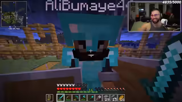 00:02:19Zu Beginn des Streams wird ein Beef mit Roads erwähnt. Es gibt technische Schwierigkeiten, da Minecraft nicht starten will. Des Weiteren werden anfängliche Probleme im Spiel beschrieben, wie das Spawnen von Schweinen im Stadion und die Unfähigkeit, sich frei zu bewegen. Streamer Ali erwähnt seine Probleme mit der Audio-Lautstärke, die er nicht selbst einstellen kann, und beschäftigt sich mit dem Bau eines Casinos, für das er jedoch noch keine Spielautomaten hat.