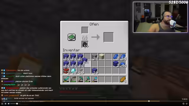 12:50:00Der Stream widmet sich dem Bau eines Stadions im Spiel Minecraft. Ein zentraler Fokus liegt auf der Beschaffung der notwendigen Ressourcen, insbesondere von Kies und Sand, um daraus Lehm herzustellen, der für den Bau benötigt wird. Besonders wichtig ist der schwarze Stein, der für die Konstruktion verwendet wird. Während des Baus treten jedoch erhebliche Schwierigkeiten auf, vor allem bei der Erstellung einer symmetrischen Struktur. Der Bauherr stellt mehrfach fest, dass das Stadion nicht mittig ist und die Höhe der Tribünen nicht übereinstimmt, was zu großer Frustration und Ungeduld bei der Umsetzung führt.