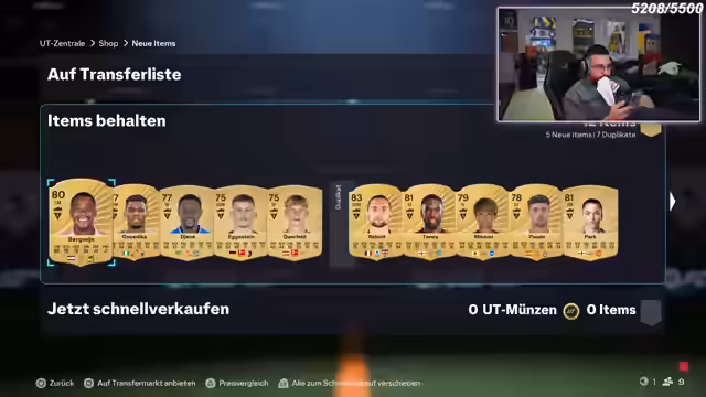 04:03:23Der Streamer konzentriert sich auf die FIFA-Draft-Challenge, bei der er versucht, ein starkes Team zu bilden, aber mit Problemen kämpft. Er beschwert sich über schlechte Spielerzüge, unerwartete Verluste und den ständigen Wechsel der Aufstellungen. Er versucht, das Beste aus der Situation zu machen, zeigt aber Frustration über die Unvorhersehbarkeit des Draft-Prozesses und die Schwierigkeiten, ein konkurrenzfähiges Team zusammenzustellen.