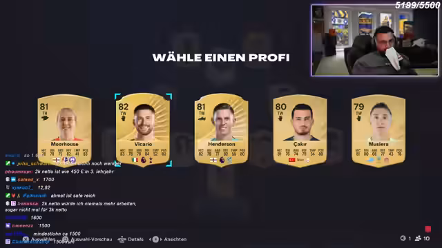 00:07:37Der Streamer plant Investitionen in FIFA, besonders im Hinblick auf die bevorstehenden Rivals-Belohnungen. Er diskutiert über den Transfermarkt und zeigt Interesse an bestimmten Spielern wie Mbappé. Es wird eine Wette mit einem anderen Streamer angesprochen, bei der es um den ersten Sieg in einem Draft-Spiel geht. Der Streamer äußert seine Unsicherheit über das eigene Team und die bevorstehenden Herausforderungen.