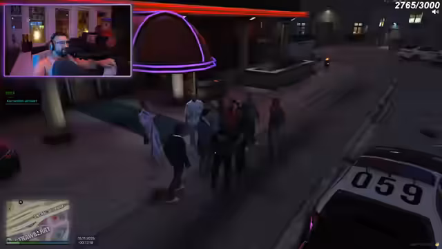 02:59:41Während der Verhandlungen kommt es zu einer chaotischen Szene vor dem Club. Mehrere Personen stürmen aus dem Gebäude, obwohl Anweisungen gegeben wurden, drinnen zu bleiben. Es entsteht ein Tumult, bei dem der Streamer versucht, die Kontrolle zu behalten und seine Mitarbeiter zu organisieren. Plötzlich bricht eine Schießerei aus, bei der die Gruppe des Streamers angegriffen wird. Es stellt sich heraus, dass die Angreifer von einer rivalisierenden Gruppe namens 'Matrix' oder 'Vanilla Klein' stammen. Nach der Schießerei trifft die Polizei ein, und es kommt zu einer Befragung der Beteiligten. Die Situation eskaliert, als die Polizei die Anwesenden durchsuchen will.