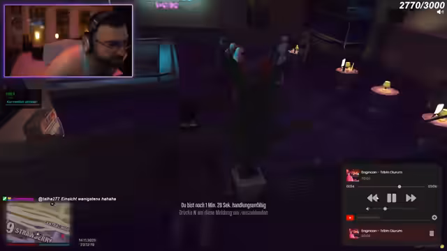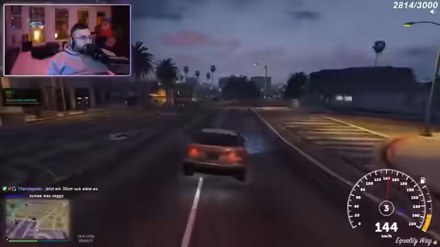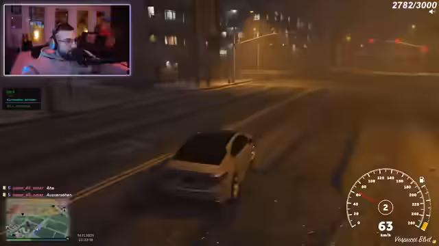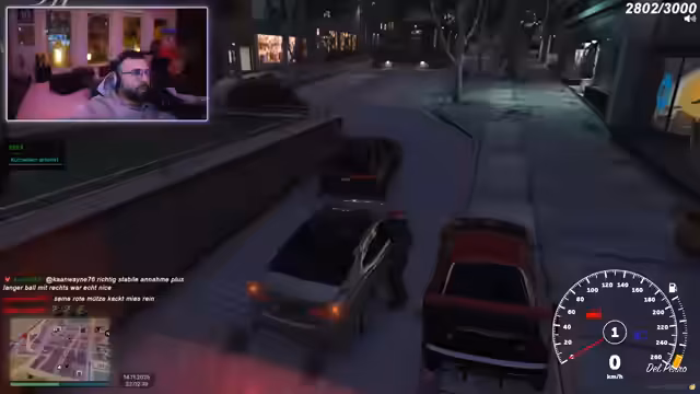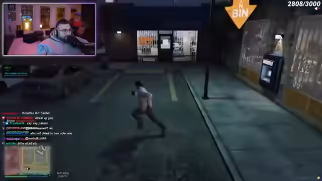 04:02:46Der Streamer und seine Freunde geraten in mehrere chaotische Situationen. Zunächst wird ein Versuch, eine "geile Sexparty" zu veranstalten, von einem Barkeeper vehement abgelehnt, der die Gruppe auffordert, sein Lokal zu verlassen. Kurz darauf tauchen Polizisten auf, was zu einer panischen Flucht führt. Die Gruppe diskutiert verschiedene Fluchtwege und die Möglichkeit eines Banküberfalls auf die Staatsbank, um Geld zu beschaffen. Trotz der Gefahr und der vollen Autos beschließen sie, sich an der Staatsbank zu treffen. Während der Flucht wird Coach Carter gerettet, und es kommt zu weiteren Verwirrungen und Beschimpfungen untereinander. Die Situation eskaliert, als mehrere Personen verletzt am Boden liegen und über die Kosten für Reparaturen und die Schuldfrage gestritten wird. Ein Diebstahl von 190 Dollar führt zu weiteren Beschwerden, bevor die Gruppe durch einen "Bomberangriff" endgültig die Flucht ergreift und der Streamer sich vorerst verabschiedet, da ihm alles zu viel wird.