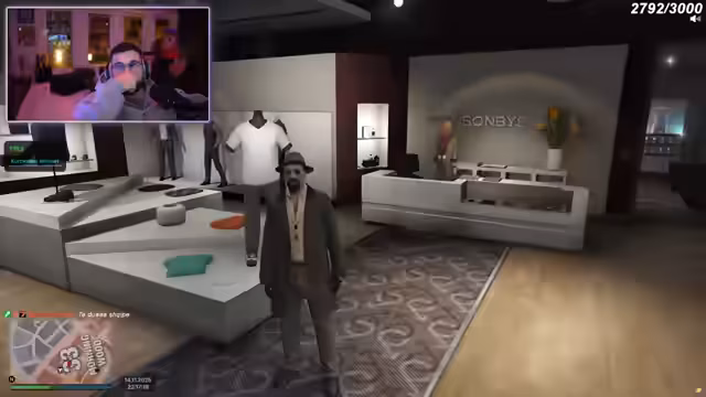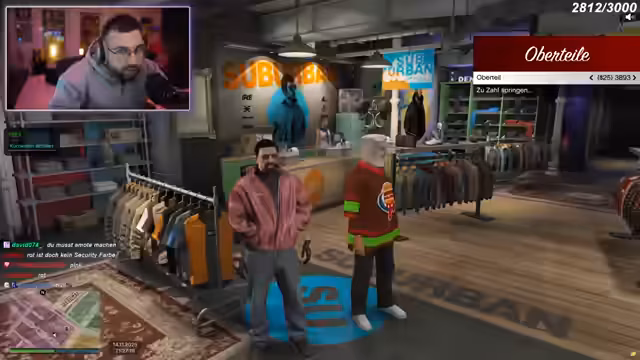 00:19:36Die Suche nach einem passenden Security-Outfit erweist sich als langwierig und herausfordernd. Der Streamer und seine Begleiter probieren verschiedene Kleidungsstücke an, darunter Bomberjacken, Mäntel und Hosen. Es gibt Uneinigkeiten über den Stil und die Farbe der Kleidung, wobei der Streamer eine professionelle und einheitliche Erscheinung für sein Team anstrebt. Vorschläge wie pinke Bomberjacken oder extravagante Mäntel werden abgelehnt. Letztendlich wird ein schwarzer Mantel mit der Nummer 5903 als Oberteil, eine Hose mit der Nummer 281 und Schuhe mit der Nummer 214 ausgewählt, ergänzt durch Ohrstecker (Airpods) mit der Nummer 152. Das Outfit soll als 'Türsteher'-Outfit gespeichert werden und nur bei Events getragen werden.